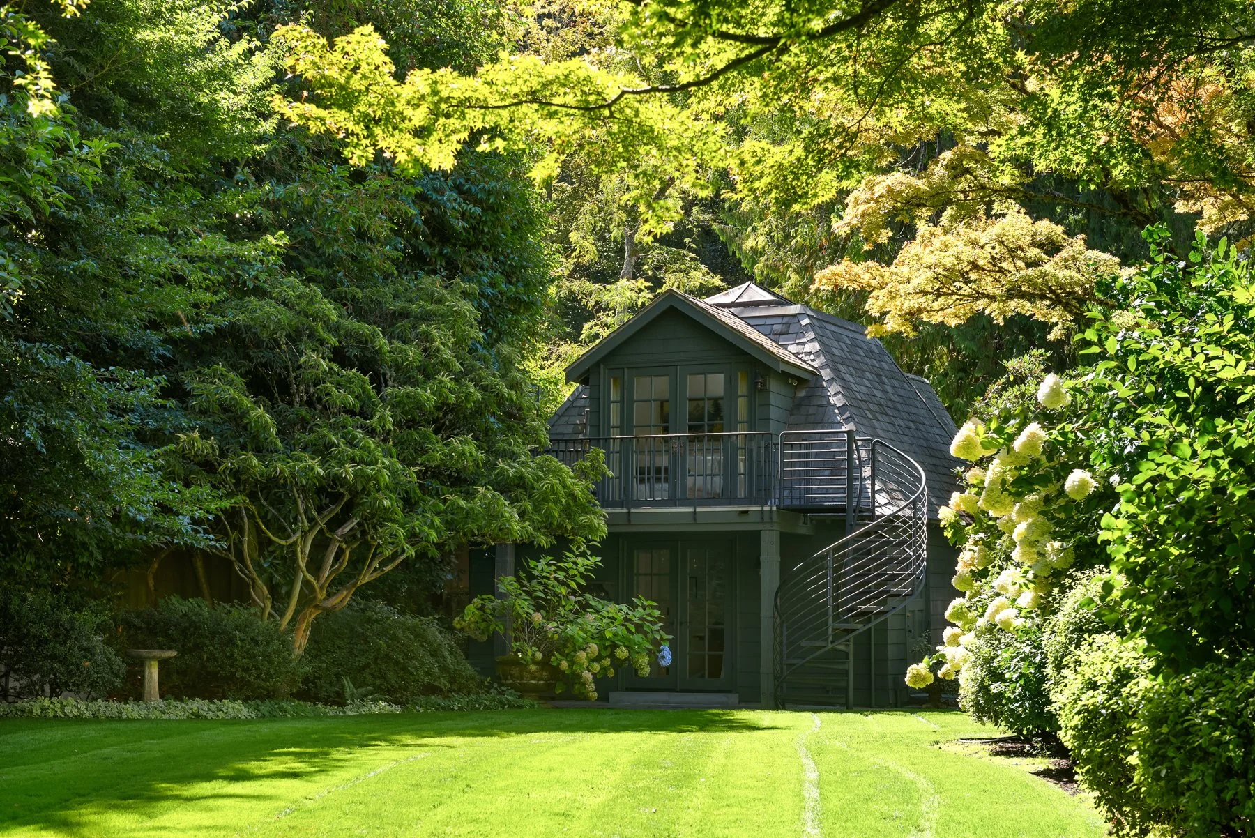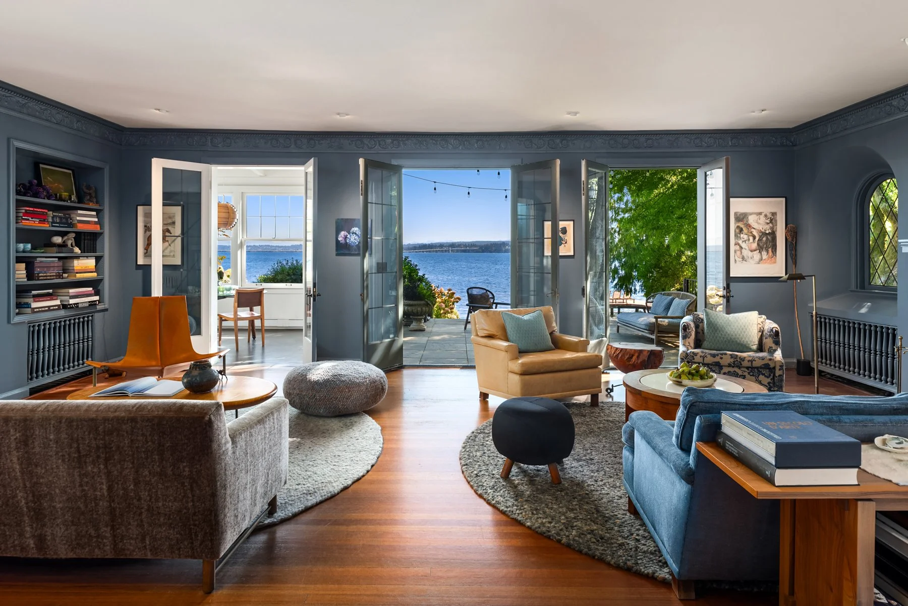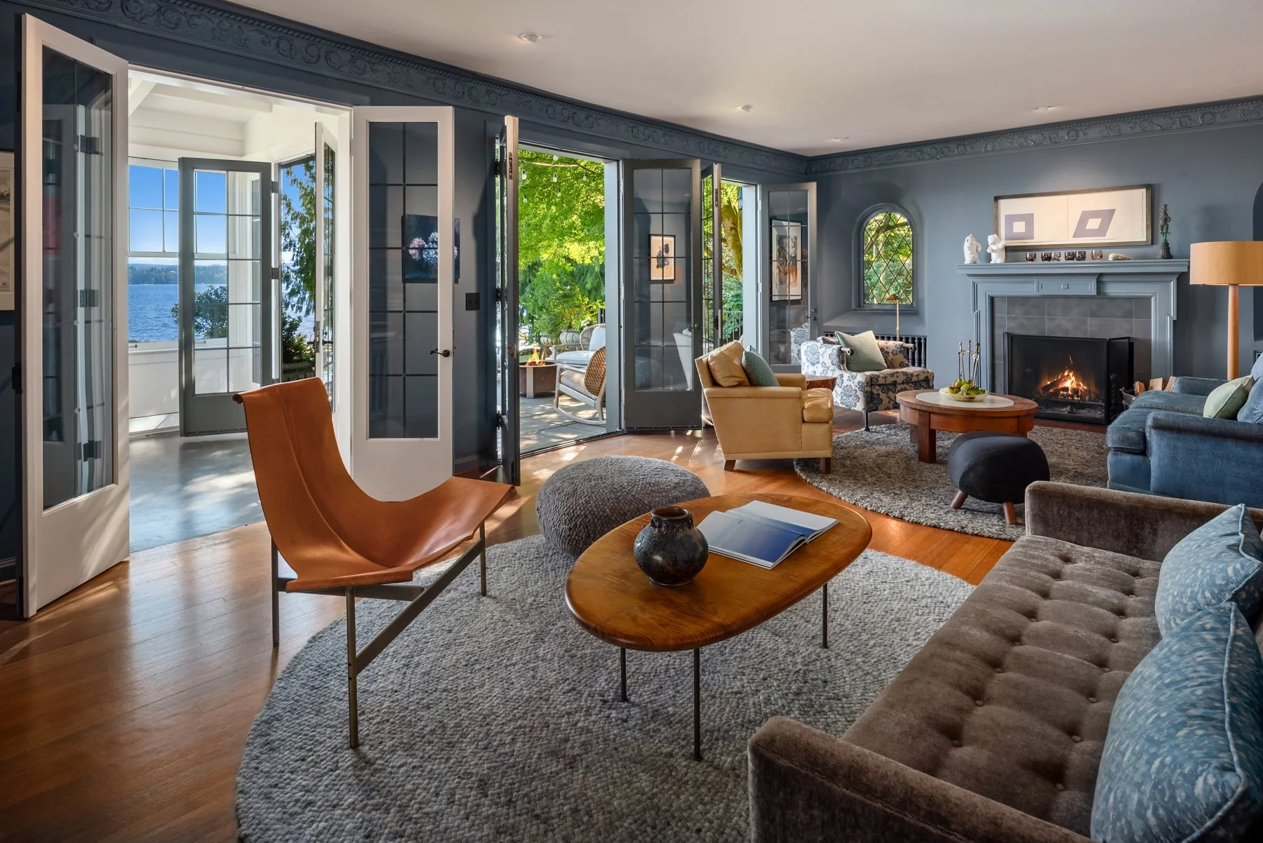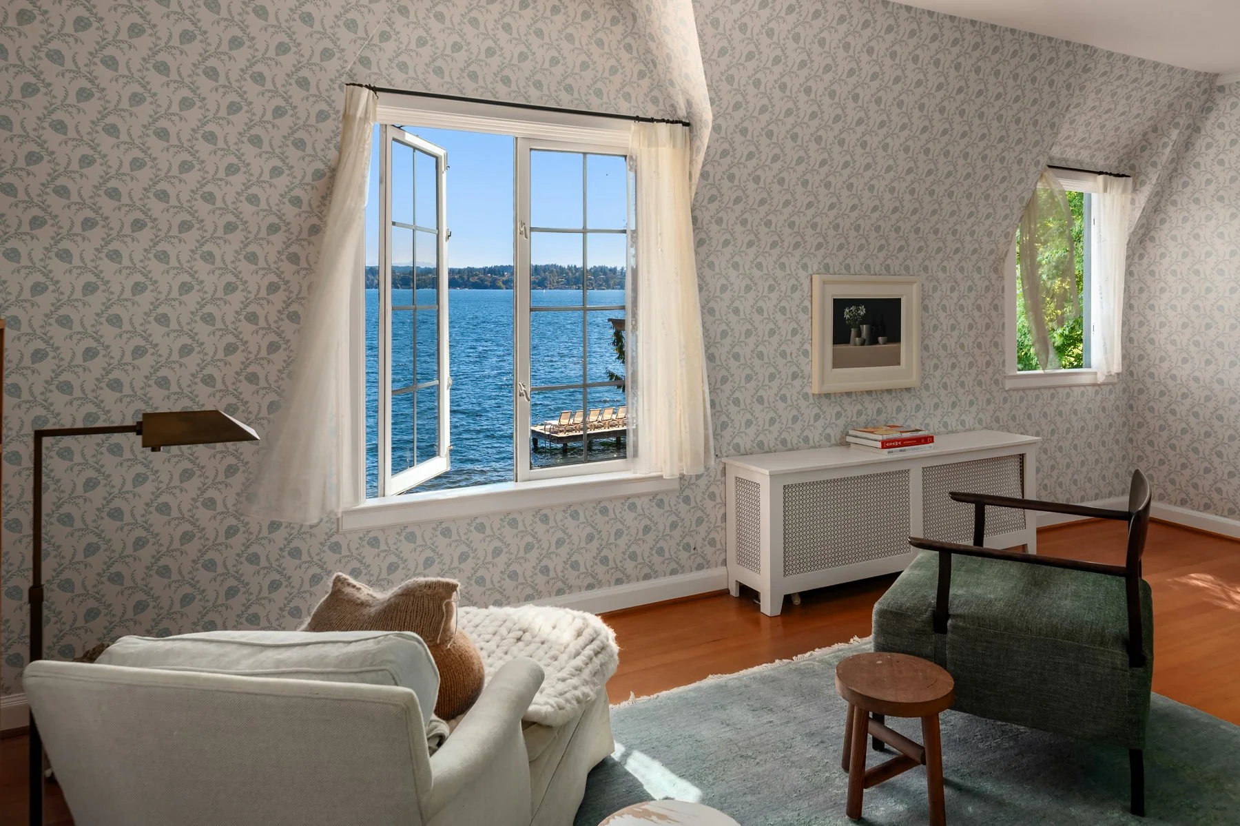 One of Seattle’s greatest waterfront opportunities awaits on the Gold Coast of Lake Washington. Whimsical charm meets modern elegance, all on 1.6± acres of park-like grounds and 153± ft of waterfront. The main residence is a Tudor-inspired architectural jewel with slate roof tiles from Italy, original crown-molding, and meticulous attention to every detail.